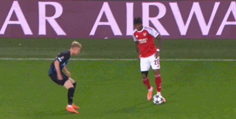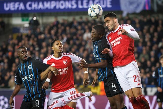 阿森纳近段时间在英超的表现不佳,被曼城连连追分,虽然还是领头羊,但领先优势只剩下2分。作为本赛季欧冠目前为止唯一全胜的球队,来到欧冠赛场,阿森纳又找回了状态。今天作客扬布雷德尔球场,开场后阿森纳就反客为主展开猛烈攻势,第3分钟,阿森纳右路压上转移中路,厄德高禁区弧顶前接球稍作调整左脚大力兜射,门将休维尔奋力将球扑出。第20分钟,阿森纳右路进攻,厄德高下底传中,马杜埃凯小禁区线上抢点后脑勺一蹭将球顶回来,斯凯利禁区弧顶处迎球左脚凌空扫射,这球打偏了,不过刚好踢到因卡皮耶跟前,后者小禁区前沿半转身凌空一挡,BOOM的一声,皮球被门柱挡出,布鲁日逃过一劫。